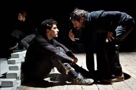 Renzo Martinelli crea in questa messa in scena un’atmosfera evocativa, concentrata, densa. In scena pochi elementi e alcuni microfoni che amplificano suoni, respiri, movimenti. I personaggi sono complementari e sottili: Jeanne (l’eccezionale Valentina Picello) è una ragazza fragile ma che non si sottrae alla ricerca della verità, alla responsabilità delle sue origini, per quanto terrorizzante intuisce che siano. Simon (Francesco Meola) è invece un ragazzo nervoso, irascibile, insicuro, che vorrebbe solo dimenticare, non affrontare il suo destino. Il notaio incaricato dell’esecuzione testamentaria di Nawal e che li accompagna nel loro viaggio (Walter Leonardi) è un personaggio divertente che ha l’essenziale funzione drammaturgica di alleggerire il testo. C’è poi la protagonista dei due tempi, Nawal (Federica Fracassi: incredibile il monologo della deposizione al processo contro il suo torturatore), che incontriamo direttamente solo nel passato e che riusciamo ad afferrare pienamente solo alla fine, quando i due figli riescono a consegnare le due lettere e queste vengono lette. Per tutto lo spettacolo, sullo sfondo, dietro a delle quinte che si muovono creando spazi diversi, un personaggio indecifrabile (Libero Stelluti), il naso da clown, attore silenzioso di cui si capisce solo in fondo l’identità, nell’incontro drammatico con gli altri personaggi.
